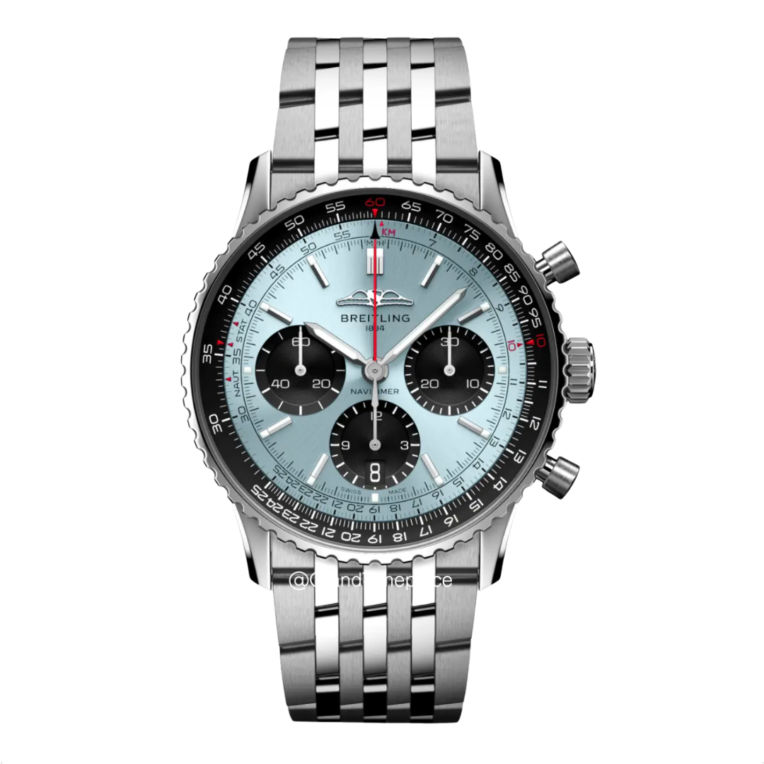 The Breitling Navitimer B01 Chronograph 41 (Ref. AB0139241C2A1) is a distinguished pilot’s watch that combines high functionality with refined aesthetics, making it a standout piece in the luxury sports watch category. This model features a polished stainless steel round case with a diameter of 41mm, striking a balance between a classic size and contemporary design. The iconic bidirectional rotating bezel is equipped with a circular slide rule, a practical feature that enhances the watch’s utility for pilots and aviation enthusiasts alike.