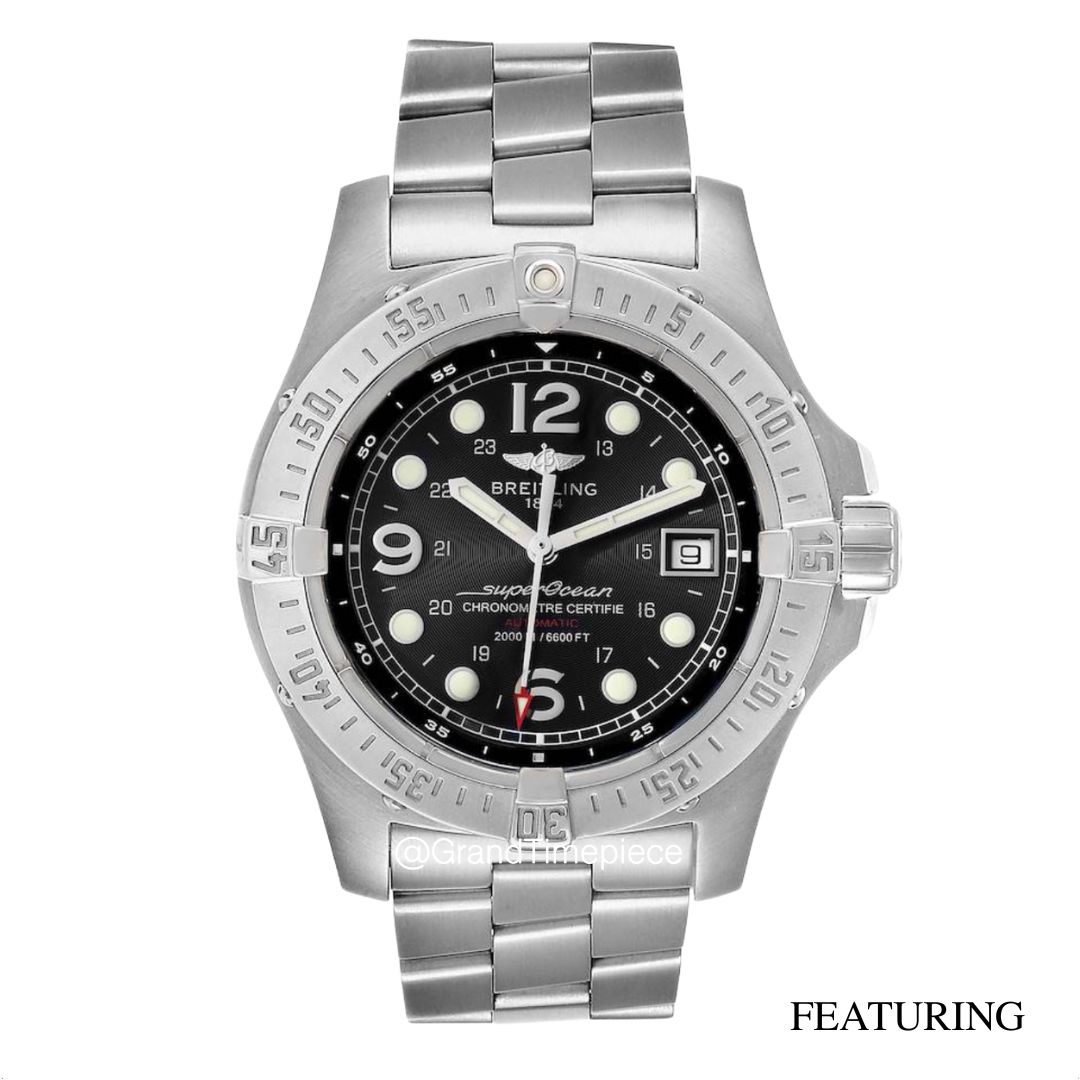 Functions: Hours, Minutes, Second, Date. This preowned luxury Breitling Superocean Steelfish has been referenced against technical documents and manufacturer records were available to ensure authenticity and a clean history. Condition: Preowned, mint. Complete original box and papers. Backed by a 12 month Grand Timepiece warranty. Style: Diver. Model: A17390 More photos coming soon!