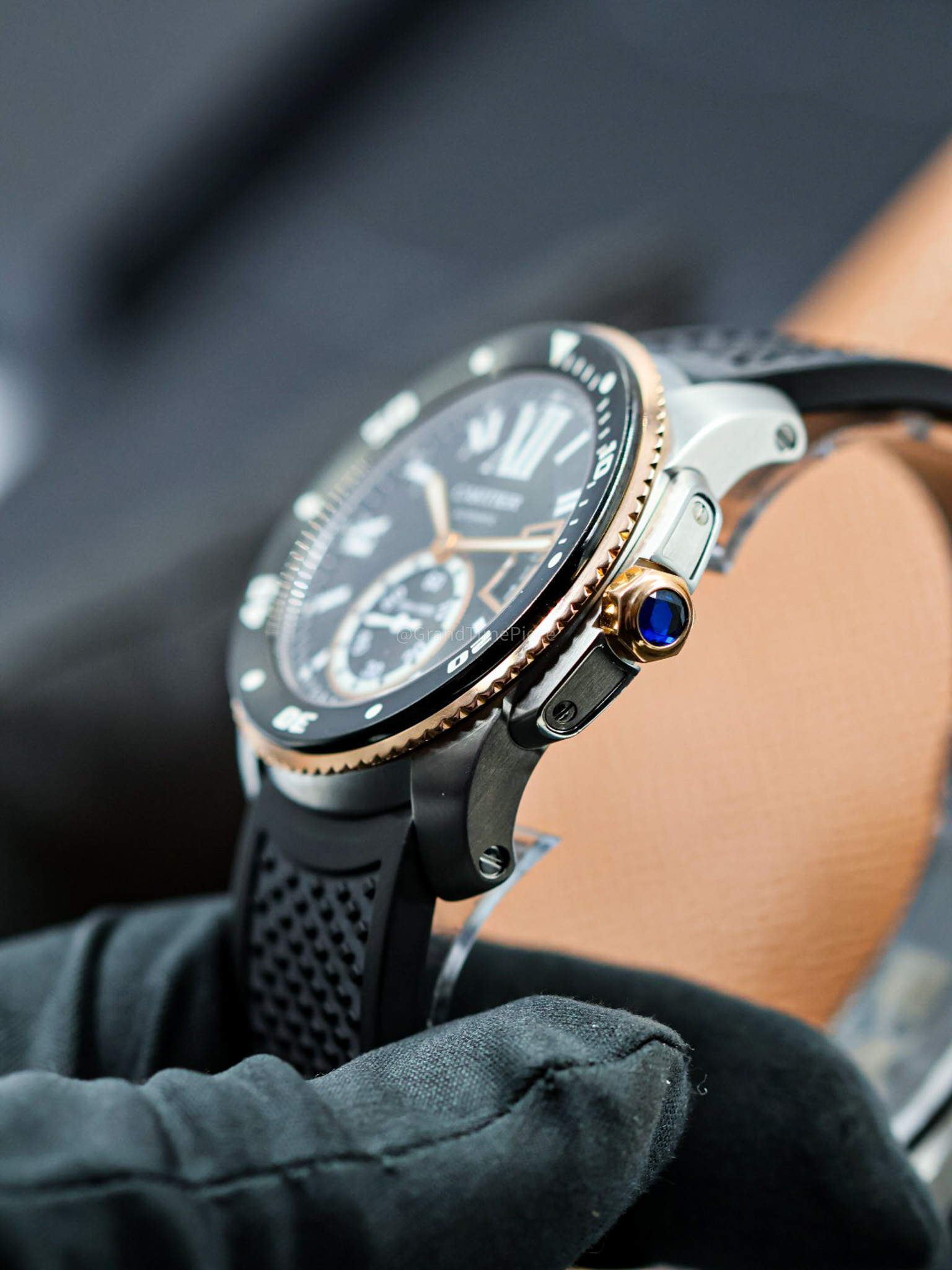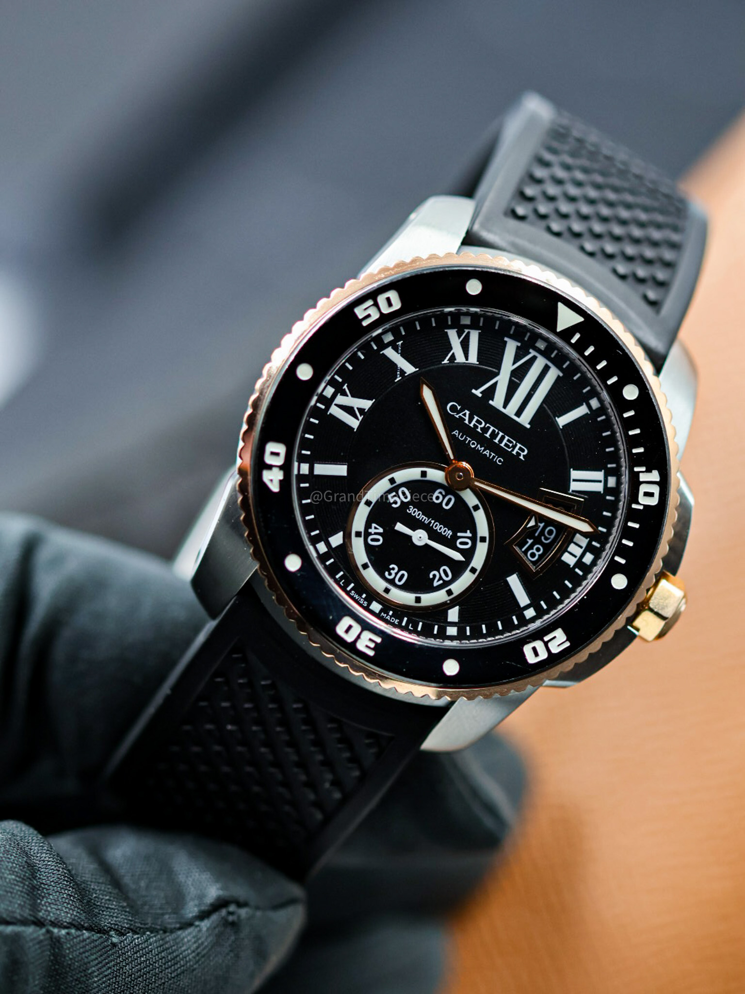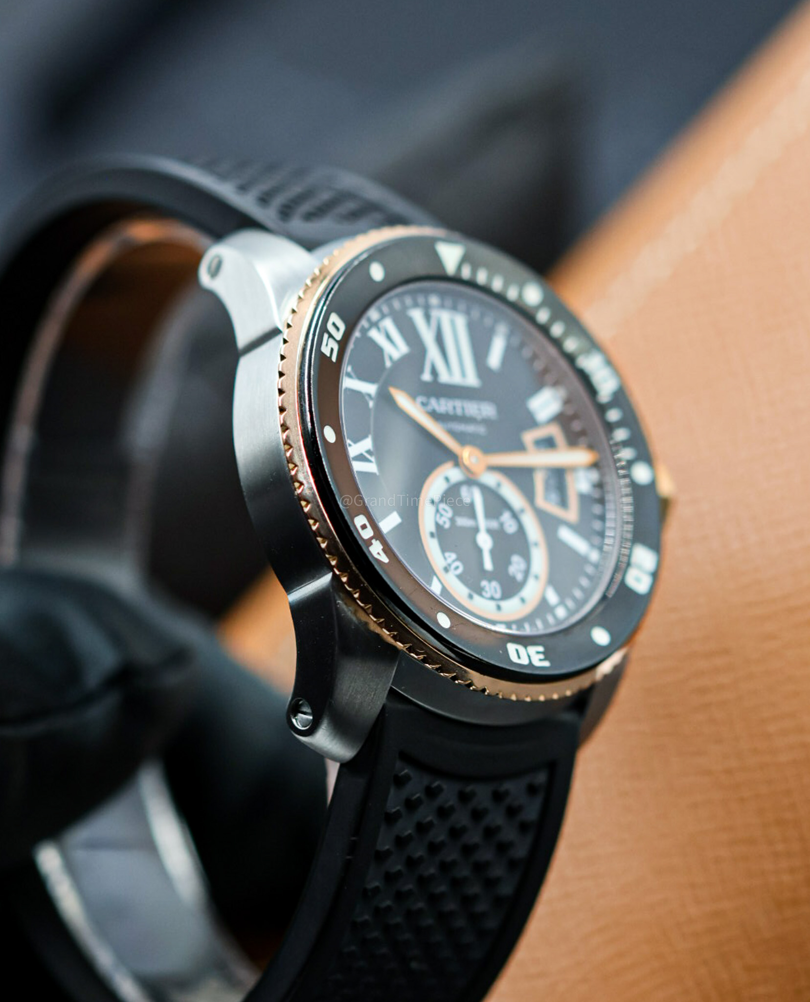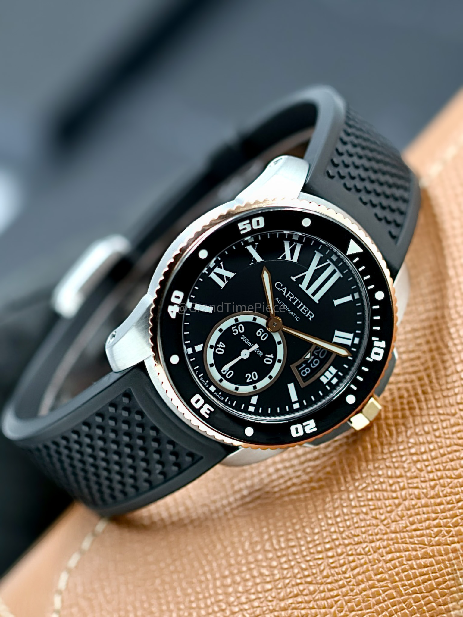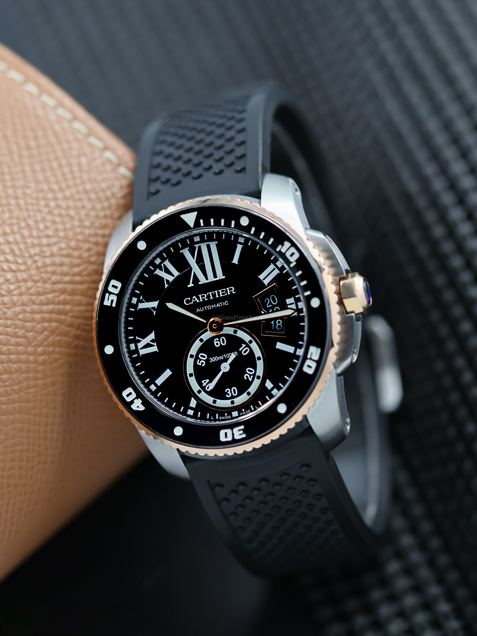 Protected by a scratch-resistant sapphire crystal with anti-reflective coating, the watch ensures clarity and resilience in everyday wear. The screw-down crown, made from 18K pink gold, adds an extra layer of security against water ingress, enabling the watch to achieve a waterproof rating of up to 300 meters. Housed within is the self-winding Cartier Calibre 1904-PS MC movement, which offers a reliable power reserve of 48 hours. The solid case back ensures the mechanical components are secured while presenting a clean, sophisticated finish. Overall, the Caliber de Cartier Diver is a harmonious blend of elegance and practicality, making it an ideal choice for discerning watch enthusiasts and those who appreciate fine craftsmanship in timekeeping.