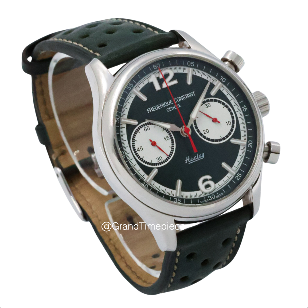 Functional attributes include a pull/push steel crown for easy adjustments and an exhibition screw-down case back that allows glimpses of the intricate mechanics inside. At the watch’s heart lies the Frederique Constant caliber FC-397, a self-winding automatic movement renowned for its precision and reliability, boasting a power reserve of 62 hours. The watch is also water-resistant up to 50 meters, which adds to its versatility, allowing it to be worn in various conditions. The Frederique Constant Vintage Rally Healey is not just a timepiece; it’s a tribute to racing heritage that seamlessly combines style, functionality, and craftsmanship.
