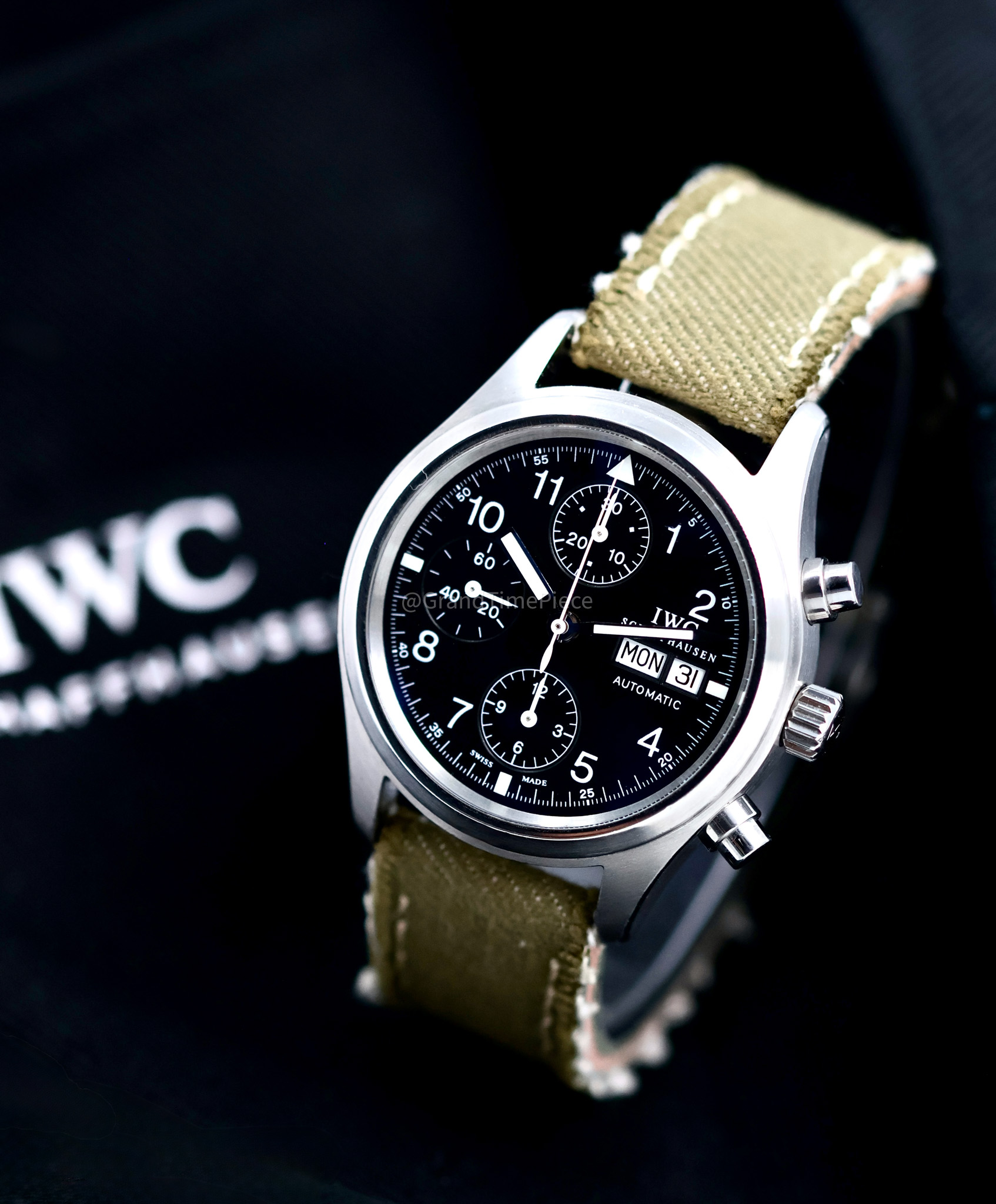 Functions: Hour, Minute, Seconds, Day, Date, Chronograph. This IWC Flieger Chronograph has been referenced against technical documents and manufacturer records where available to ensure authenticity and a clean history. Immaculate condition with IWC box and Valuation papers. Backed by a 12 month Grand Timepiece warranty. Style: Classic Model: IW370603. Photos of the actual watch!