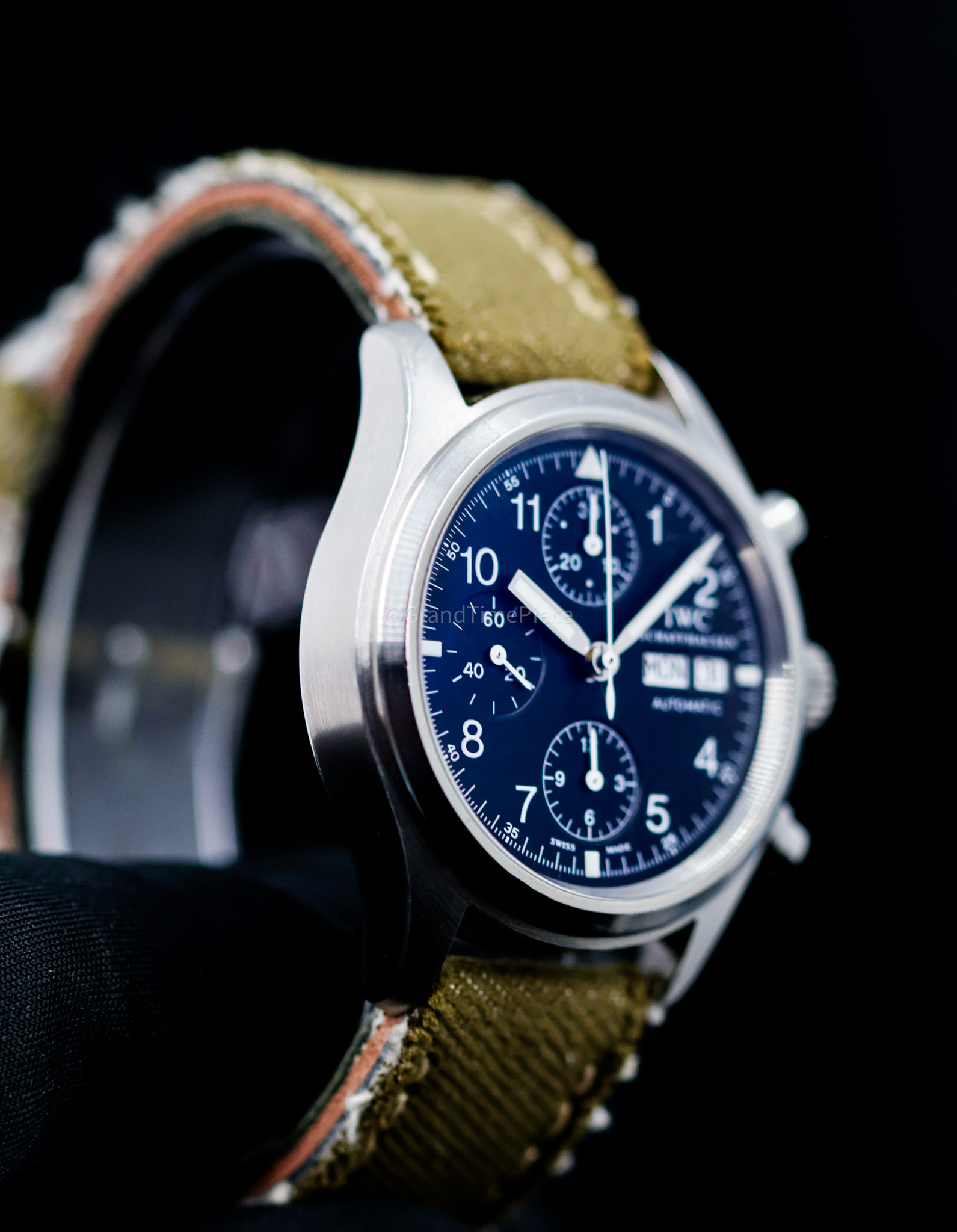 Beneath its stylish exterior lies the IWC Calibre 7922, a self-winding automatic movement that provides a power reserve of 44 hours. This reliable mechanism delivers precise timekeeping and is a testament to IWC’s dedication to quality craftsmanship. While designed with a focus on functionality and performance, the watch also boasts a solid stainless steel case back, adding to its sturdy build. With a water resistance of up to 30 meters, the IWC Flieger Chronograph is well-suited for light aquatic activities while maintaining its status as a versatile and classic chronograph that appeals to both aviation enthusiasts and watch collectors alike.