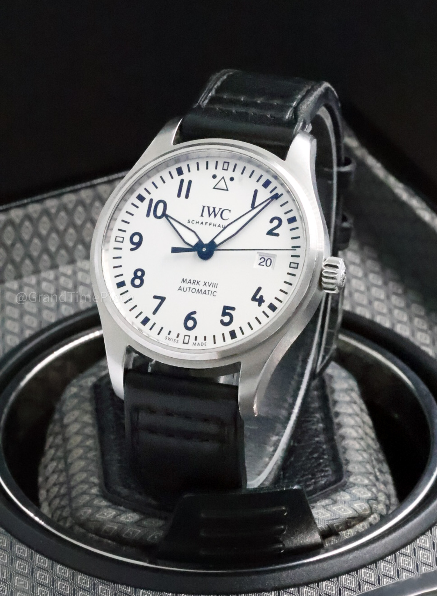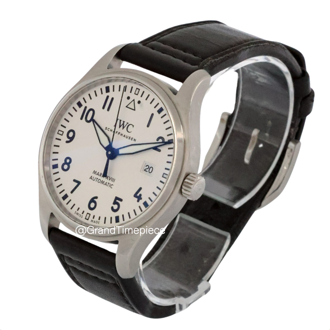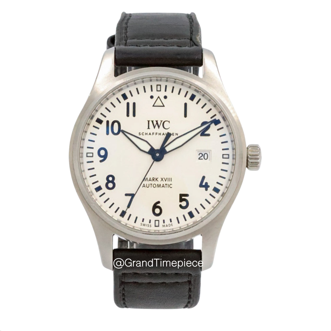 Functions: Hour, Minute, Seconds, Date. This IWC Pilot Watch Mark XVIII has been referenced against technical documents and manufacturer records where available to ensure authenticity and a clean history. Immaculate condition with full box and papers. Backed by a 12 month Grand Timepiece warranty. Style: Pilot Model: IW327002. Photos of the actual watch!