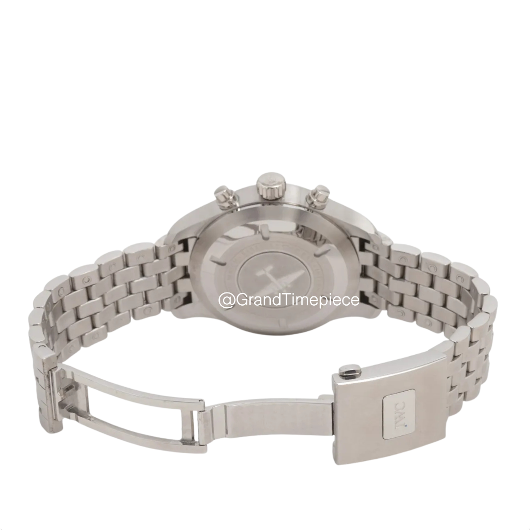 The IWC Pilot’s Watch Chronograph model IW377710 is a quintessential timepiece that embodies the spirit of aviation, merging functionality with an unmistakable aesthetic that characterizes the brand’s heritage in pilot watches. The watch features a robust round-shaped case made from stainless steel, with a substantial diameter of 43.0 mm, ensuring a solid presence on the wrist. Inside this case lies a Soft-Iron inner casing that offers effective protection against magnetic fields, addressing a critical concern for aviators who operate in environments where magnetic interference can affect precision.