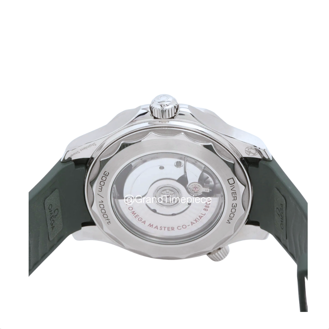 This watch is equipped with a domed scratch-resistant sapphire crystal that features anti-reflective treatment on both sides, ensuring clarity from every angle. The robust screw-down steel crown, also adorned with the iconic Omega logo, further enhances the watch’s water resistance while emphasizing the brand’s signature style. A glimpse through the exhibition case back reveals the intricate self-winding mechanical movement, Omega Calibre 8800, which boasts an impressive power reserve of 55 hours. With a water resistance rating of up to 300 meters, the Seamaster Diver 300M is not only a sophisticated accessory but also a reliable companion for any underwater adventure, perfectly marrying advanced technology with timeless design.