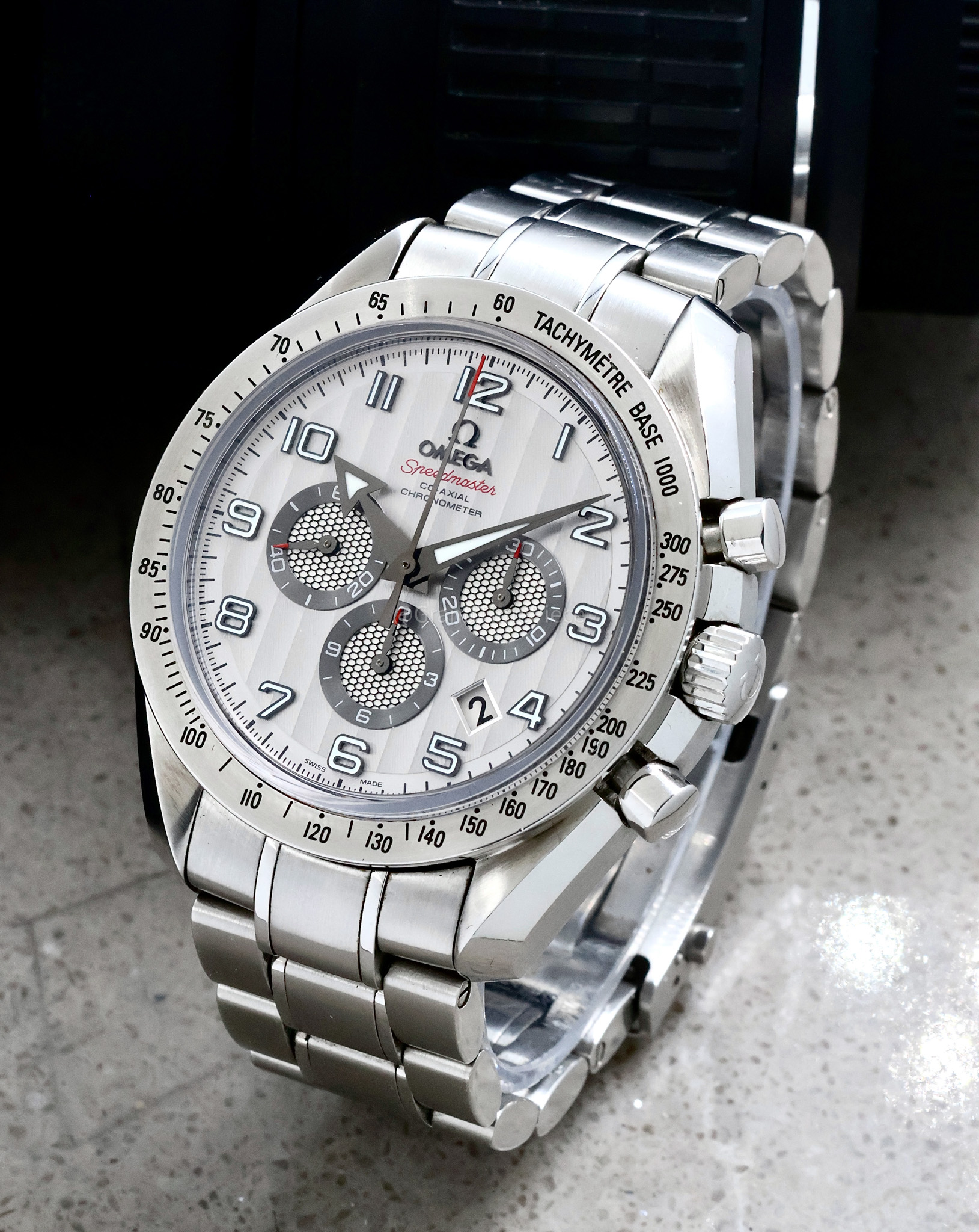 Functions: Hours, Minutes, Chronograph. This pre-owned luxury Omega Speedmaster Board Arrow has been referenced against all technical documents and manufacturer records were available to ensure authenticity and a clean history. Pre-owned timepiece. MINT. Includes original Omega box and papers. Backed by a 12 month Grand Timepiece warranty. Style: Luxury. Model: 321.10.44.50.02.001 Photos of the actual watch!