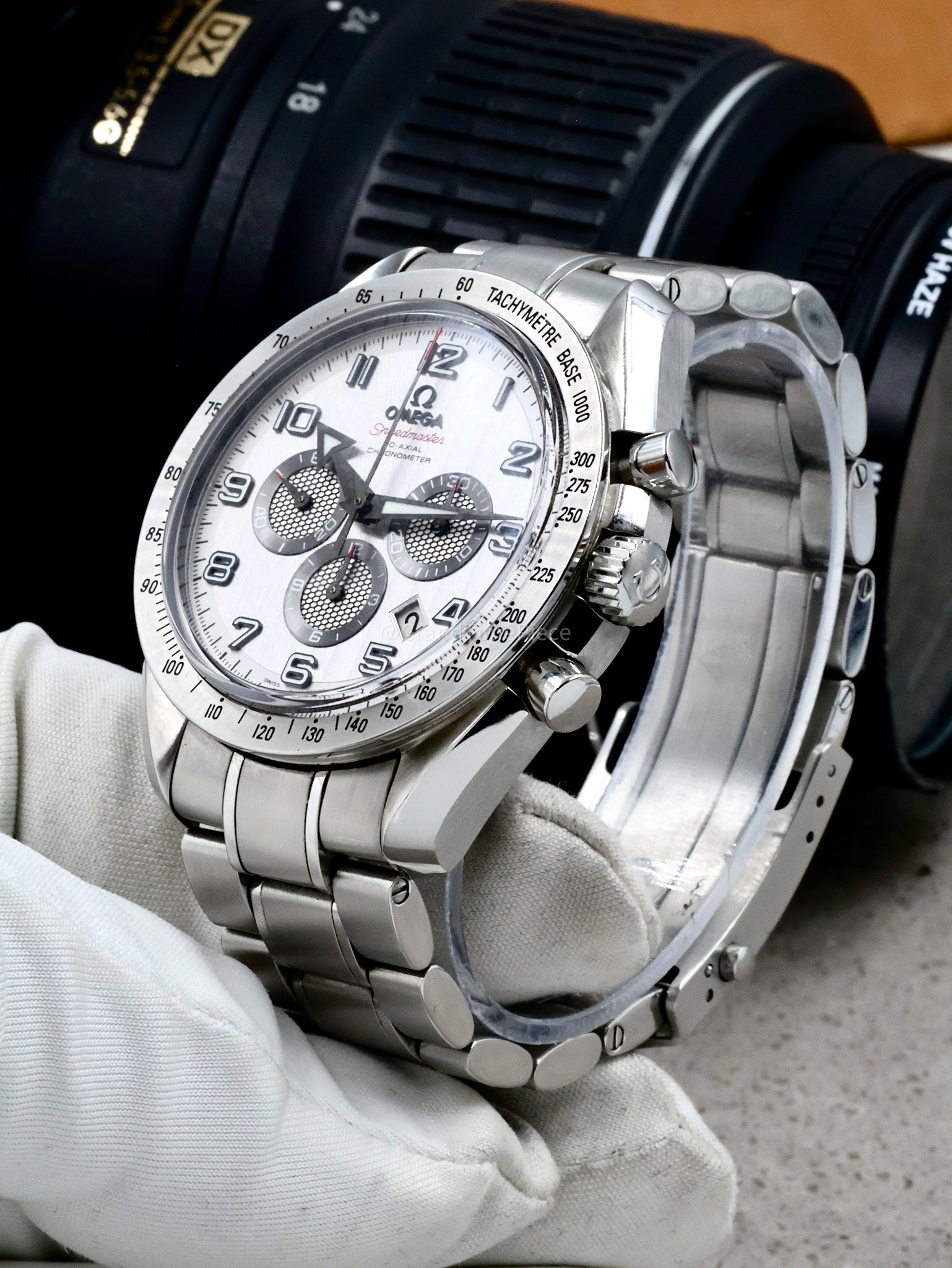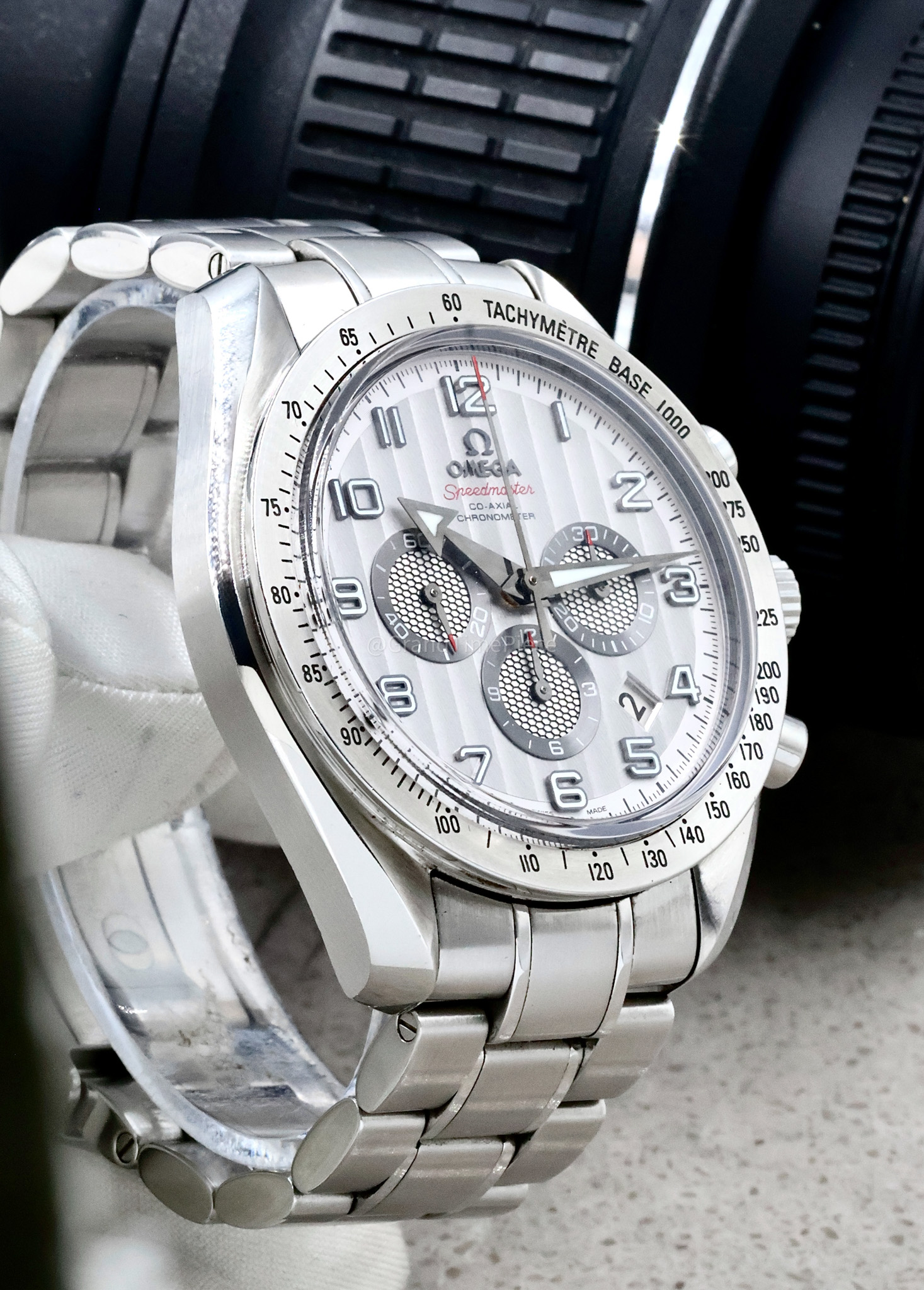The stainless steel pull-push crown facilitates ease of use and enhances the overall functionality of the watch. An exhibition caseback reveals the intricate workings of the self-winding automatic movement, powered by Omega’s Calibre 3313. This caliber not only offers a remarkable power reserve of 52 hours but also exemplifies the craftsmanship OMEGA is renowned for. Although the Speedmaster Broad Arrow is designed with sophistication in mind, it is also practical, featuring a water resistance of up to 30 meters, making it suitable for everyday situations. Overall, this model reflects OMEGA’s dedication to precision, style, and performance, making it a significant addition to any watch collection.