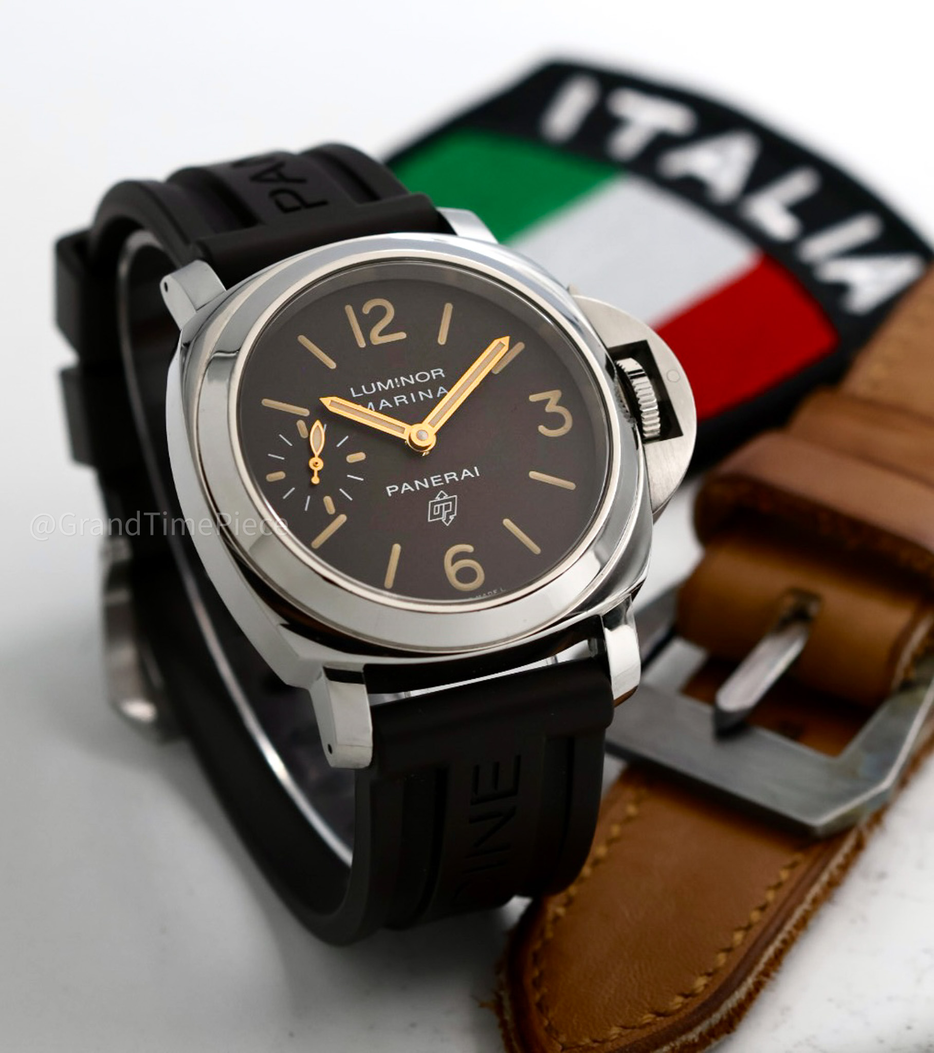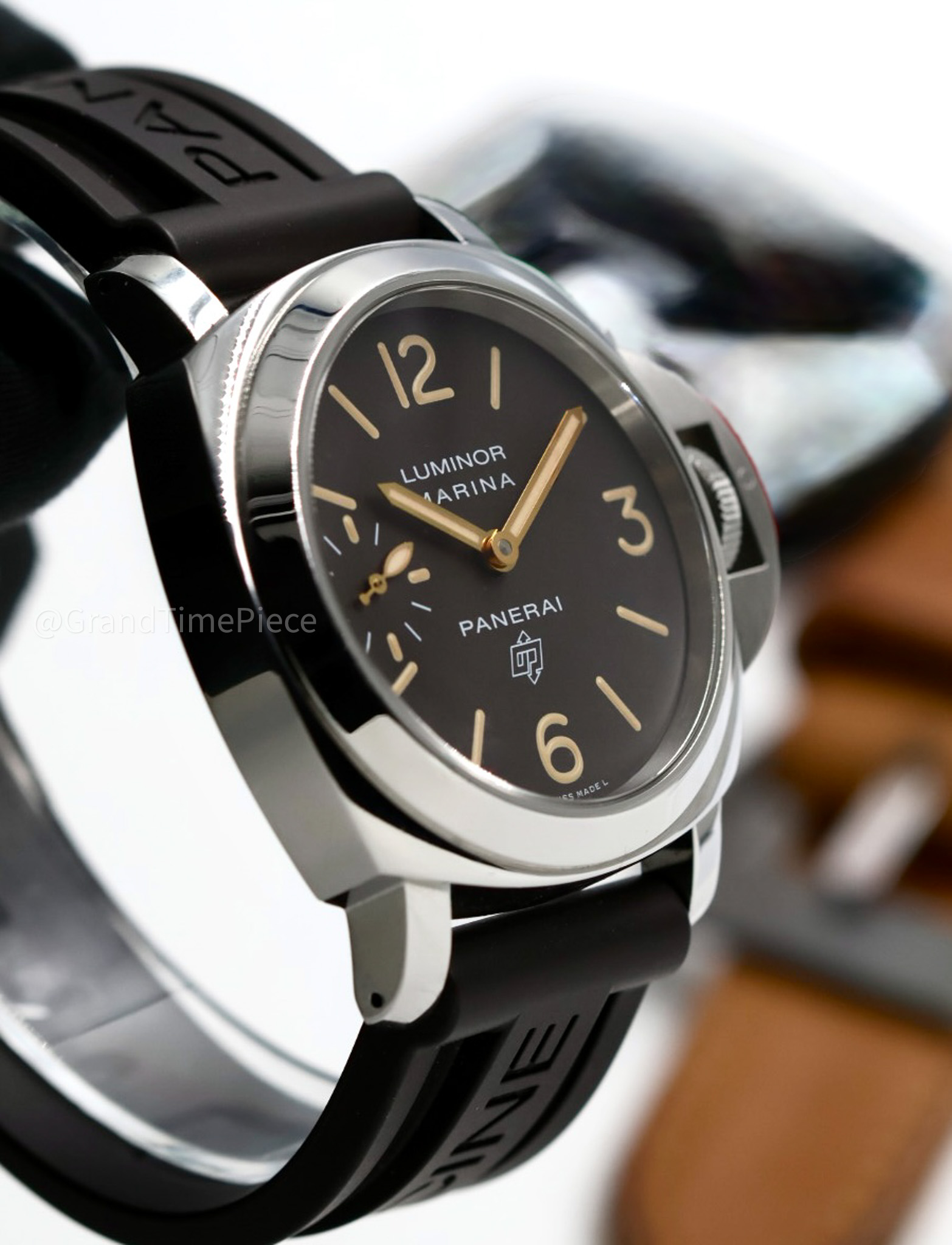 The Panerai Luminor PAM00632 is an iconic timepiece that merges the brand’s heritage with contemporary design, making it a desirable choice for both collectors and enthusiasts alike. Featuring a robust cushion-shaped case crafted from stainless steel, the watch maintains a substantial presence on the wrist with a 44.0 mm diameter, exuding a sense of strength and sophistication. It is fitted with a rich brown leather strap paired with a sturdy stainless steel tang-buckle, adding a touch of classic elegance while ensuring secure wear.