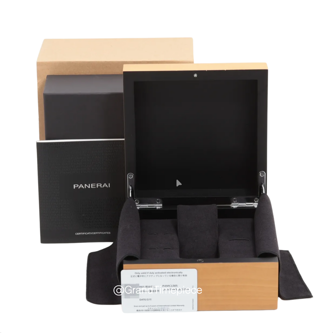The Panerai Luminor Submersible 1950, model PAM01305, is a robust and highly functional dive watch that embodies the signature design ethos of the Panerai brand. This impressive timepiece is constructed with a sturdy titanium cushion-shaped case that measures an ample 47.0 mm in diameter, giving it a commanding presence on the wrist while ensuring durability and lightweight comfort. The watch is fitted with a durable black rubber strap that features a titanium tang buckle, perfectly suited for underwater activities and providing a secure fit.