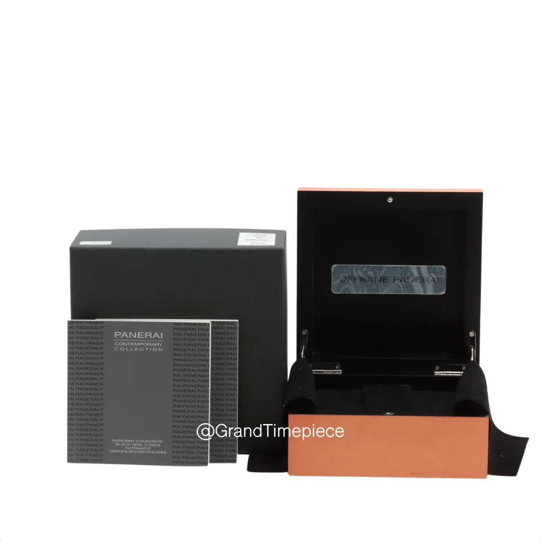 The Panerai Radiomir Composite Black Seal model PAM00505 is a captivating timepiece that pays homage to the brand’s storied history, specifically its original Radiomir watches designed for the Royal Italian Navy in the 1930s. Launched in 2012, this model has since been discontinued, making it a sought-after addition for collectors and enthusiasts in the watch market. The watch features a distinctive cushion-shaped case crafted from brown composite ceramic, which measures 45.0 mm in diameter. This lightweight material is not only aesthetically pleasing but also exceptionally durable and scratch-resistant, embodying the qualities that Panerai is renowned for.