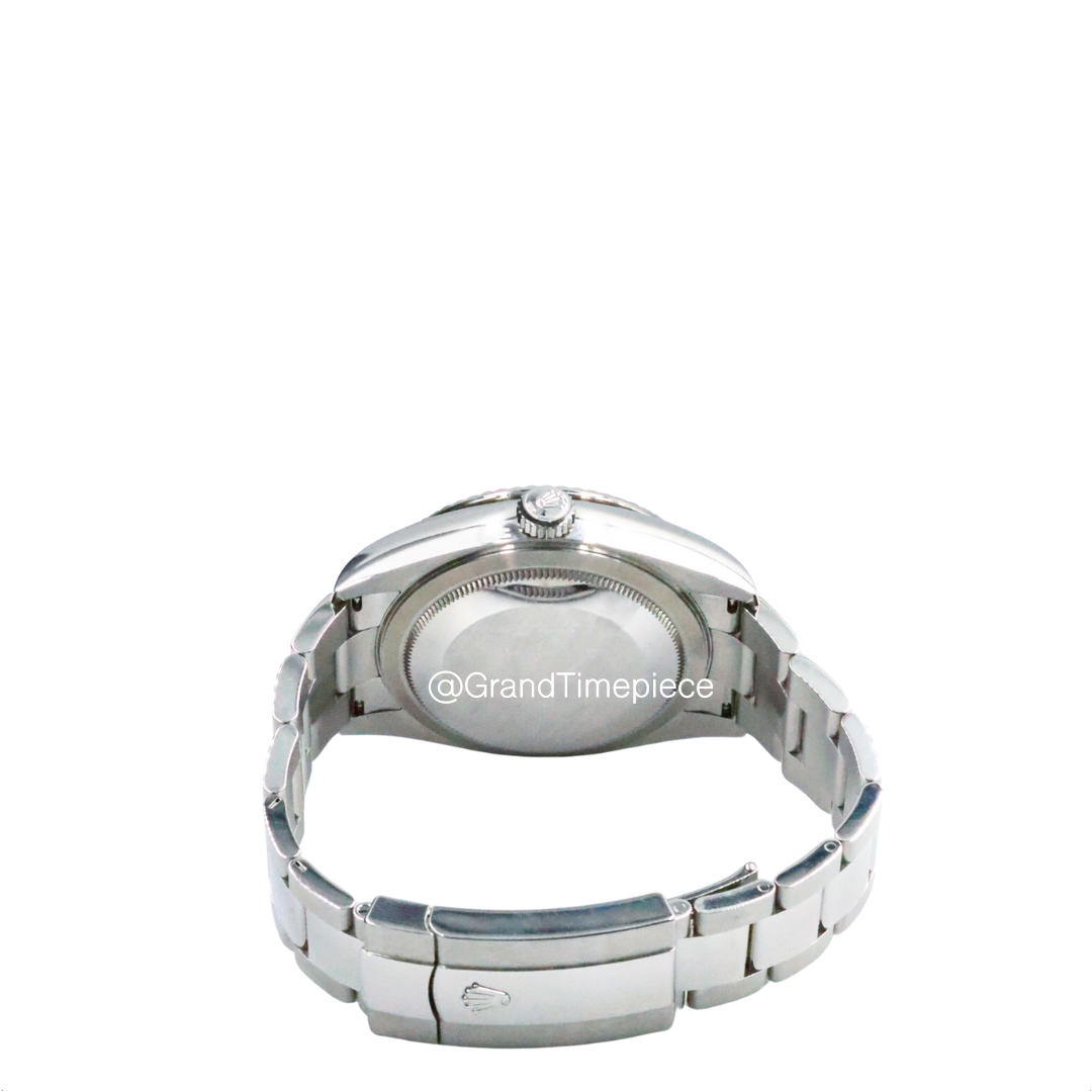 The Ring Command system is noteworthy for its unique interaction between the rotatable bezel, the winding crown, and the movement. This mechanism allows the wearer to easily and securely select the watch’s various functions, making adjustments straightforward and user-friendly. The bright black dial further elevates the watch’s overall look, featuring silver-tone hands and hour numerals that offer an elegant contrast against the dark backdrop. Enhanced by Rolex’s Chromalight display, the watch boasts long-lasting blue luminescence, ensuring that it remains legible even in low-light conditions, a crucial feature for frequent travelers or anyone who values functionality.
