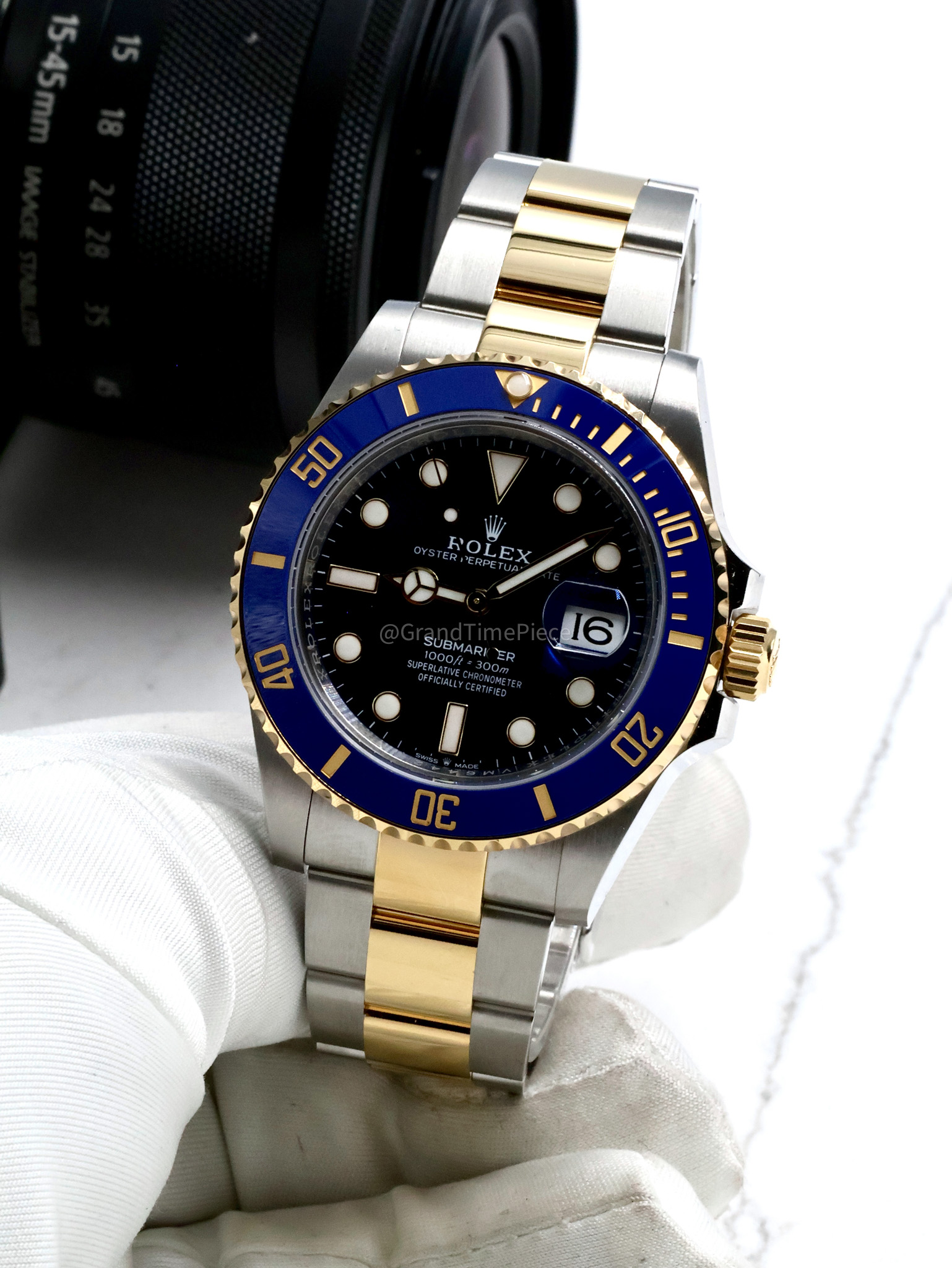 Internally, the Rolex Calibre 3235 drives the watch, a self-winding automatic movement renowned for its accuracy and reliability, offering a substantial power reserve of up to 70 hours. This model is capable of withstanding depths of up to 300 meters, making it an ideal companion for serious divers and those who appreciate the intricacies of fine watchmaking. Overall, the Rolex Submariner 126613LB not only delivers on performance and durability but also stands out as a statement piece that reflects Rolex’s commitment to luxury and precision.