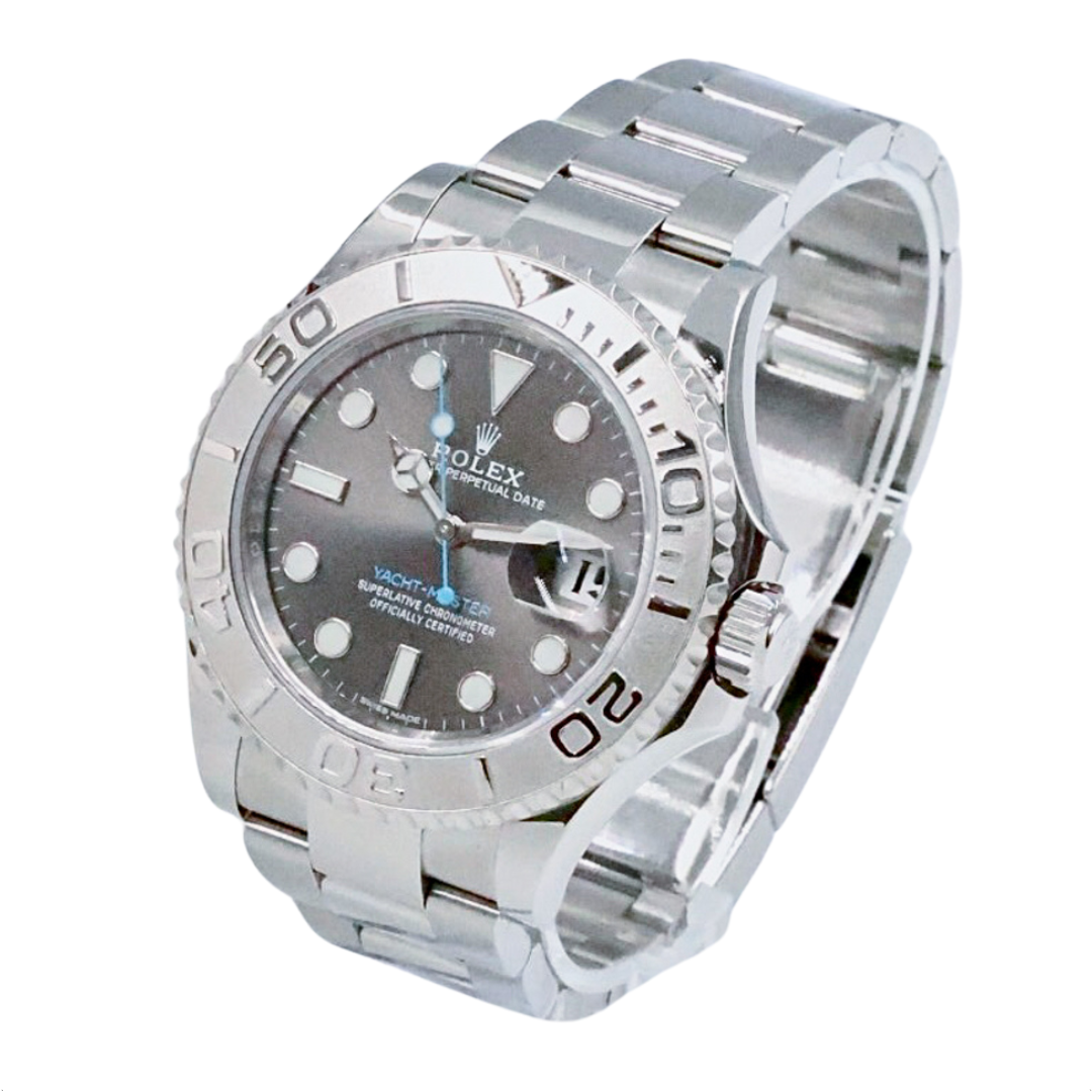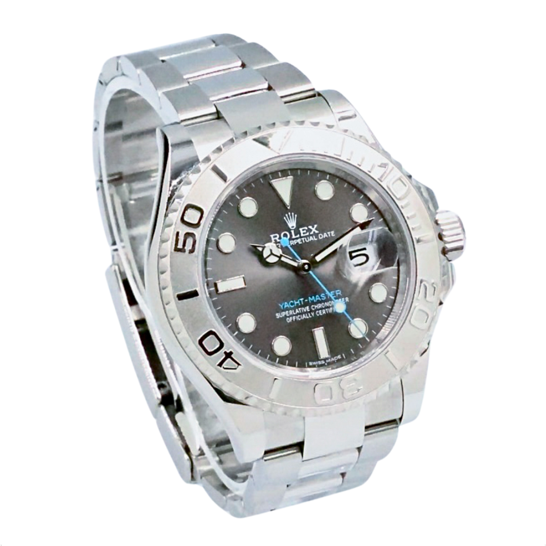 The Rolex Yacht-Master, model 116622, exemplifies the brand’s mastery in crafting luxurious yet functional timepieces. Central to this model is its Oystersteel round case, which spans 40.0 mm in diameter, providing a refined and sporty presence on the wrist. The design is further enhanced by an Oyster bracelet, meticulously crafted from Oystersteel featuring polished center links, giving it a sophisticated sheen. Comfort is paramount with the inclusion of a folding Oysterlock safety clasp, which includes the innovative Easylink 5mm comfort extension link, allowing for easy adjustment and a secure fit.
