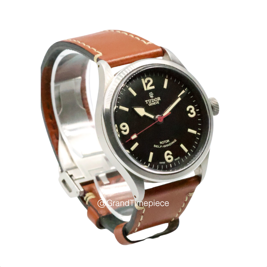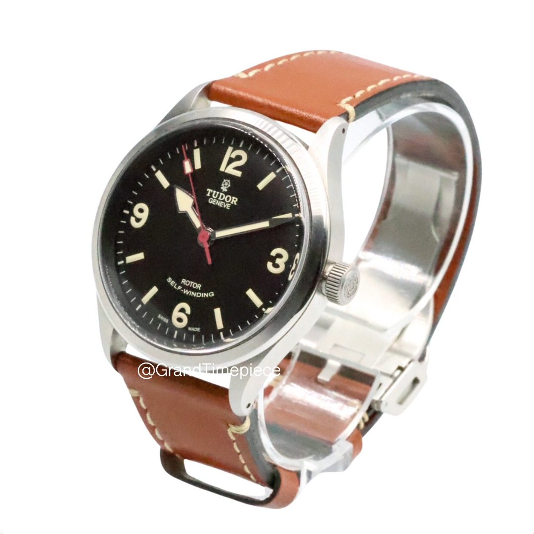Functions: Hour, Minute, Second. This Tudor Heritage Ranger has been referenced against technical documents and manufacturer records to ensure authenticity and a clean history. Comes with original box and papers. Pre-owned. Backed by a 12 month Grand Timepiece warranty. Style: Diver, Sport. Reference: 79910. Photo of the original watch!