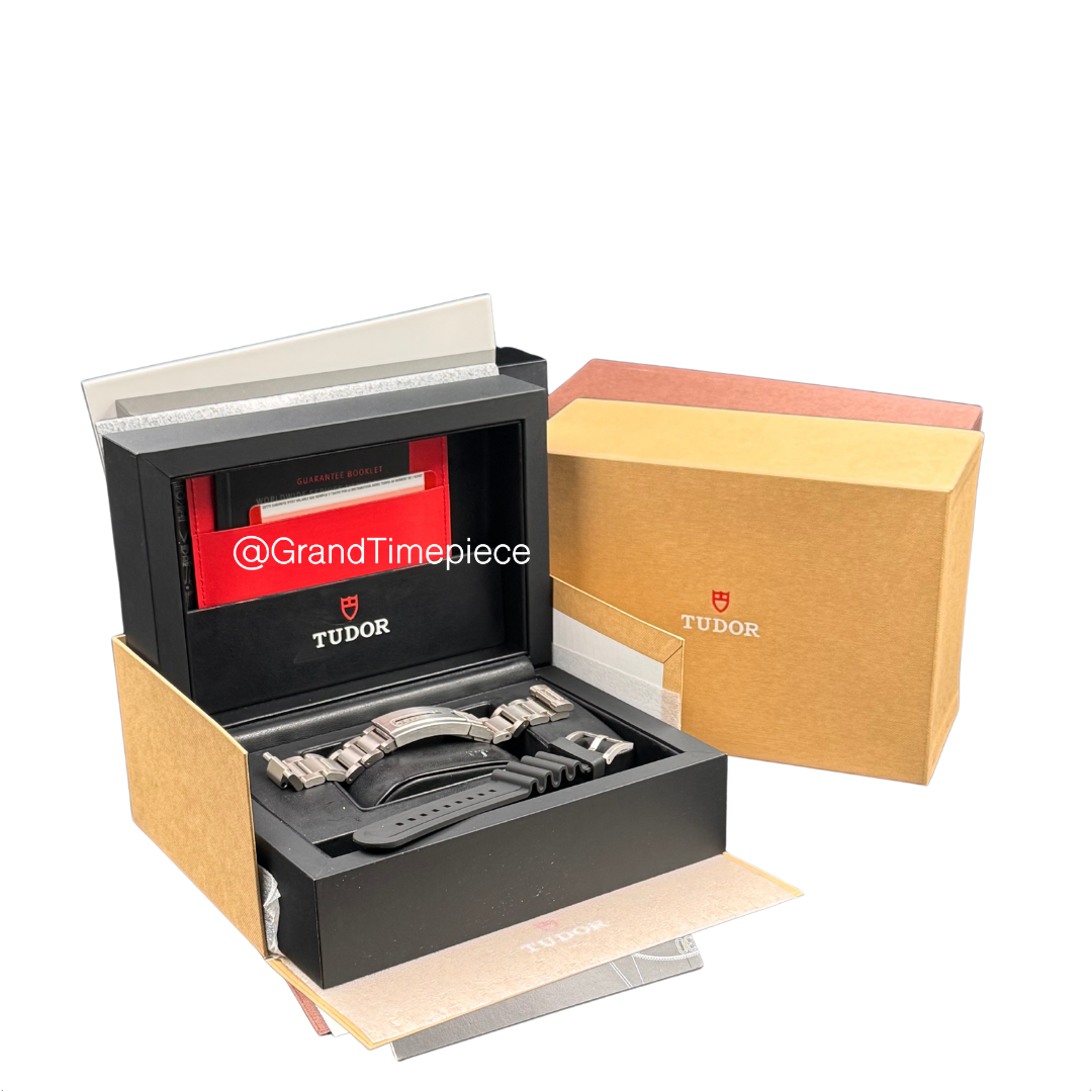 The watch is equipped with a titanium bracelet that features a folding clasp, complemented by a safety catch in steel for added security. This bracelet includes a patented extension system developed by Tudor, allowing the wearer to easily adjust the fit over a wetsuit or for comfort during various activities. The unidirectional rotatable bezel is crafted from titanium and features a graduated scale over 60 minutes, with options for a ceramic matt blue or matt black disc, both of which are marked with white luminescent material for visibility in low-light conditions.