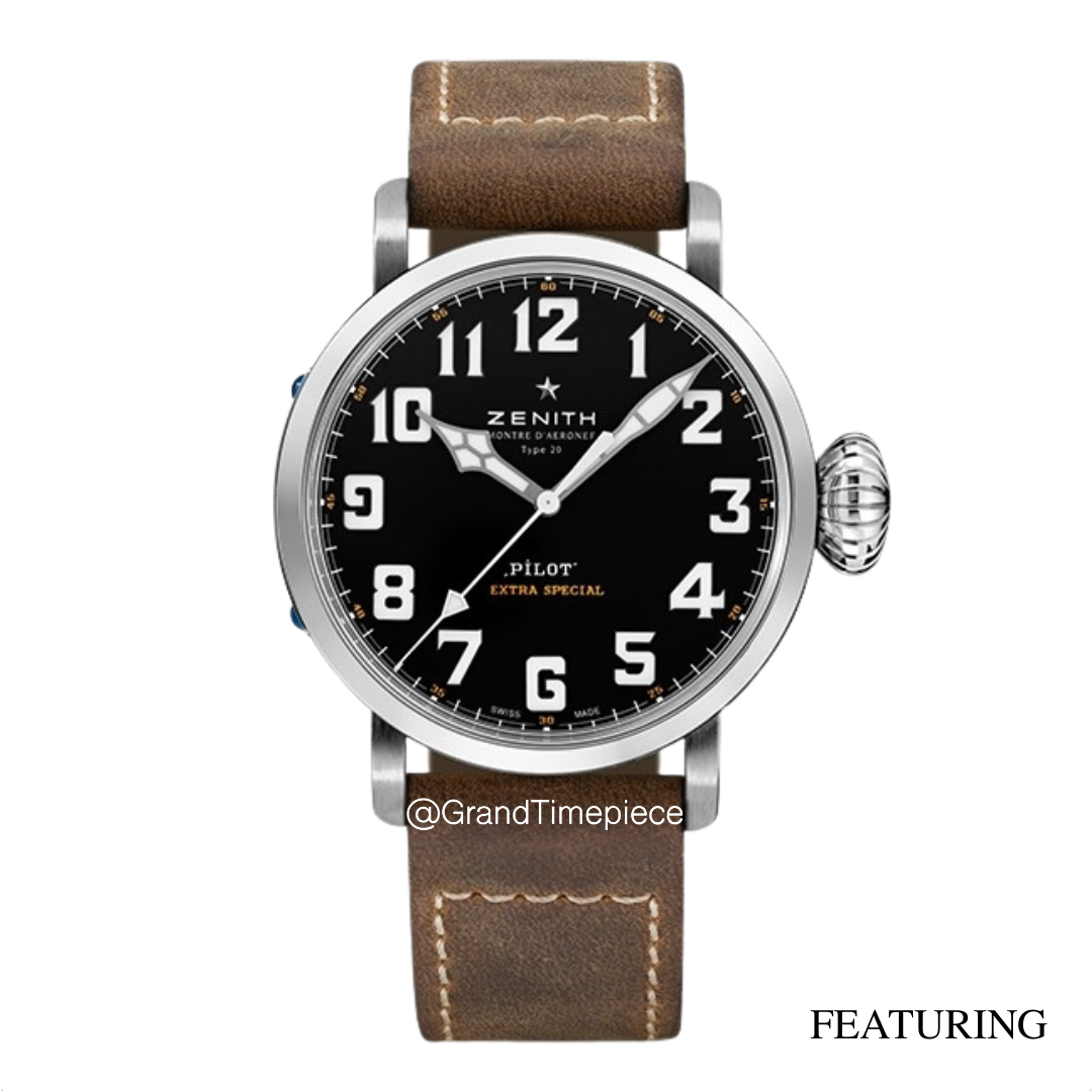 Functions: Hours, Minutes, Seconds. This preowned luxury Zenith Pilot TYPE 20 Extra Special has been referenced against technical documents and manufacturer records were available to ensure authenticity and a clean history. Mint condition with complete original box and papers. Style: Pilot. Model: 03.2430.3000/21.C738 Photos of the actual watch!